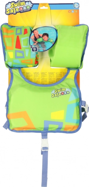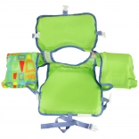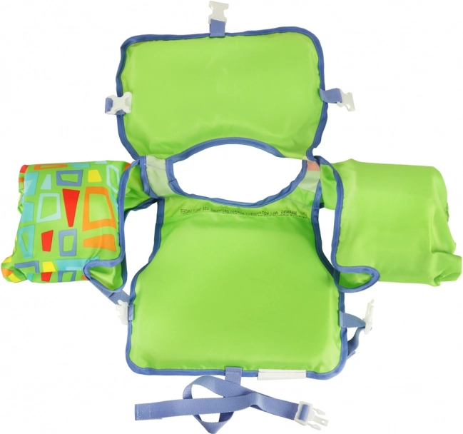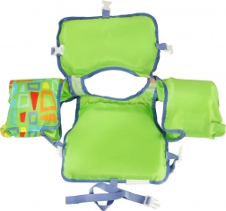 L'imbottitura in schiuma del giubbotto assicura una grande forza di galleggiamento, mentre le maniche attaccate rivestite con materiale morbido mantengono il bambino a galla senza problemi. Le fibbie regolabili garantiscono una perfetta regolazione al corpo del bambino, assicurando comfort durante il gioco. Il giubbotto è caratterizzato da un design verde brillante e un motivo interessante che attira l'attenzione, rendendo il bambino visibile anche da lontano.