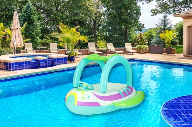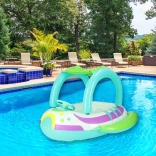Il pontone gonfiabile BESTWAY, dal vivace design “spaziale”, trasforma ogni bagno in un’avventura. La tettoia assicura una protezione efficace dal sole e il fondo morbido con seduta offre massimo comfort durante il gioco e il relax. Il volante stimola la fantasia e sviluppa la motricità.