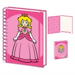Elegante quaderno ad anelli formato A5 con il motivo di PRINCESS PEACH dalla leggendaria serie SUPER MARIO. Ideale per appunti a scuola, al lavoro e in viaggio, con pratica rilegatura ad anelli e design di gioco accattivante.