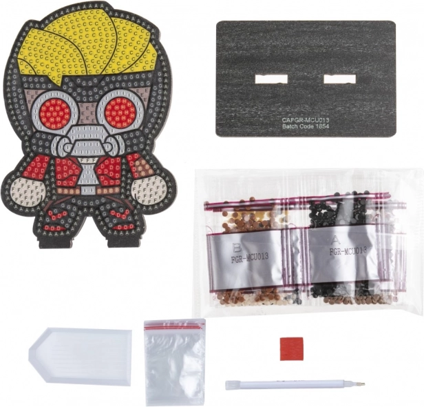 Il kit Crystal Art - Star-Lord include tutto il necessario per creare un affascinante quadro scintillante. I processi creativi includono un modello prestampato con uno strato adesivo, cristalli colorati e strumenti per la loro applicazione.
