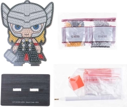 Nel kit trovi tutto il necessario: penna applicatrice, cera, vaschetta, set di gemme colorate, base della figurina e supporto. La figurina finita è perfetta come decorazione per scrivania o scaffale, regalo per i fan degli Avengers o come primo passo nel mondo del diamond painting.