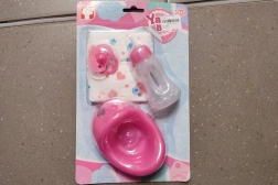 Questo set di accessori per bambole include un vasino, una bottiglia, un ciuccio e un pannolino, ideale per ogni giovane badante dai 3 anni.