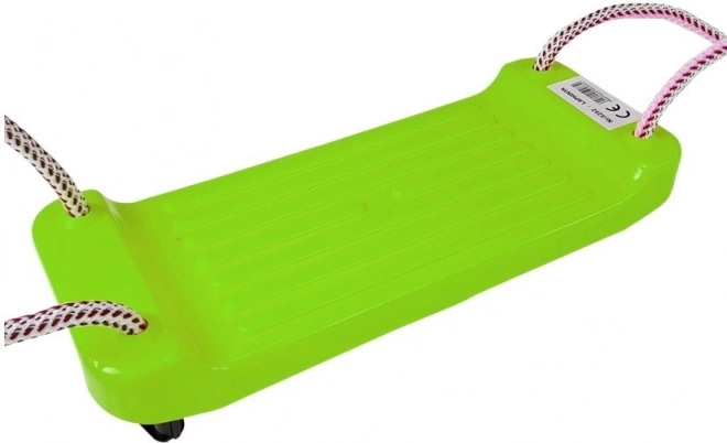 Altalena a tavoletta in plastica verde per bambini dai 3 anni, garantisce ore di movimento e divertimento in casa e in giardino. Dispone di corde robuste con ganci, installazione facile, è leggera e resistente e soddisfa le certificazioni CE ed EN 71. Portata massima 50 kg.