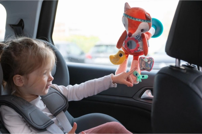 Viaggiare sarà più divertente con il giocattolo di peluche volpe Alice di Lilliputiens, che grazie alla ventosa si attacca facilmente alla finestra. Questo giocattolo offre una serie di attività interattive per i più piccoli, che sviluppano la loro motricità fine e percezione sensoriale.