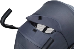 Per il massimo comfort ci sono schienale reclinabile e poggiapiedi regolabile. Dettagli pratici come la possibilità di aprire il manicotto da un solo lato, elementi riflettenti per maggiore visibilità e la maniglia per trasportare il passeggino chiuso semplificano la quotidianità. La dotazione include anche borsa per i genitori, parapioggia e zanzariera, così sei pronto a ogni condizione meteo.