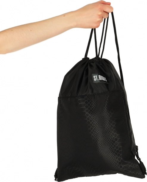 Sacca pratica e stilosa per scarpe o abbigliamento da ginnastica del marchio ST. RIGHT in elegante colore nero. Grazie al materiale tessile leggero e alla chiusura a coulisse con cordini robusti si porta facilmente a mano, a spalla o sulla schiena. Ideale per scuola, allenamento e uso quotidiano, con dimensioni compatte 34 × 43 cm per riporre comodamente scarpe e piccoli oggetti.