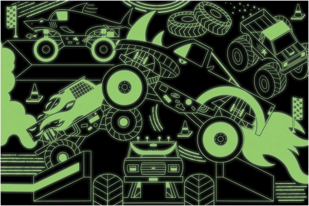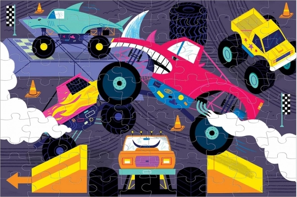 Componi una scena dinamica ed emozionante con il puzzle Monster Trucks, che brilla al buio una volta spente le luci! Questo puzzle contiene 100 pezzi tagliati con precisione ed è realizzato con materiali riciclati e sostenibili. La superficie opaca speciale assicura una resa fedele di tutti i dettagli e dei colori.