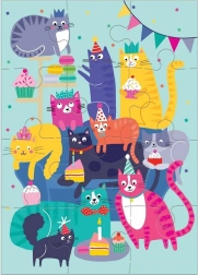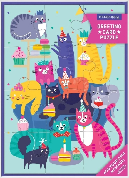 Completa il puzzle colorato Festa dei Gatti e crea un augurio originale per i tuoi cari. Ciascuno dei 12 pezzi è tagliato con precisione e le immagini dei gatti illumineranno ogni casa. Puoi facilmente inserire il puzzle nella busta inclusa, che è coordinata nei colori, e inviarla per posta.