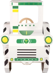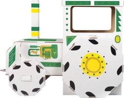 Questo trattore in cartone per bambini stimola la fantasia, il gioco condiviso e lo sviluppo della motricità fine. La struttura in cartone, leggera ma robusta, è sicura per l’uso domestico e pronta per un montaggio rapido. La superficie bianca neutra con dettagli verdi e gialli ha un aspetto giocoso e si integra facilmente in qualsiasi cameretta.