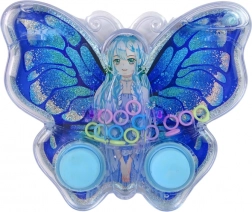 Il giocattolo ad acqua ha la forma di una farfalla con grafica colorata in tre varianti cromatiche.