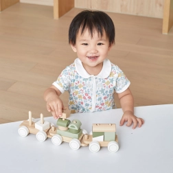 Il trenino in legno del marchio Polar B è un modo perfetto per sostenere la creatività e le capacità dei bambini. Il trenino comprende tre vagoni collegati e 14 blocchi colorati di diverse forme. I bambini possono assemblare e disassemblare i blocchi, rafforzando così la loro coordinazione mani-occhi.