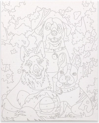 Questo set di dipingere con i numeri ti guida passo dopo passo nella creazione di una scena colorata con tre cani a passeggio. Le aree numerate sulla tela corrispondono ai numeri sui vasetti di colore, così saprai esattamente dove applicare ogni tonalità. Dipingere è rilassante, divertente e adatto a principianti e bambini.