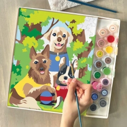 Scopri la gioia della creatività con il set completo di dipingere con i numeri con il motivo cani nel parco. Grazie alla tela prestampata, alle vernici acriliche numerate e a 2 pennelli, potrai dipingere facilmente un quadro d’effetto anche senza esperienza precedente.