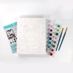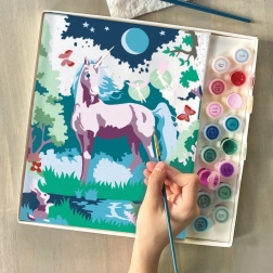 Scopri relax e creatività con il set pittura per numeri – unicorno. Ideale per principianti e avanzati: basta applicare il colore corretto ai campi numerati per creare facilmente un quadro personalizzato con un magico motivo a unicorno.