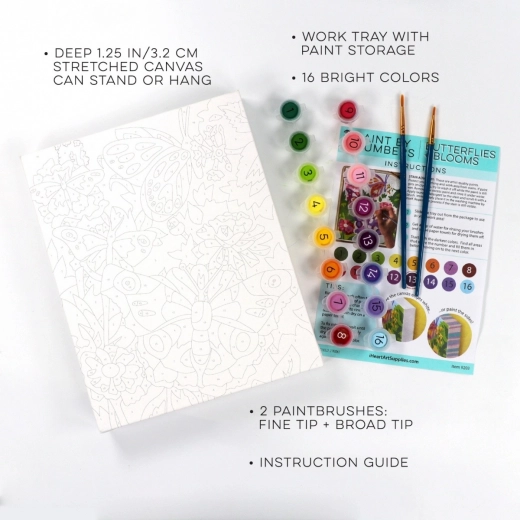Scopri il set rilassante per il dipingere con i numeri con tema farfalle, ideale per principianti e avanzati. Ti basta applicare il colore corretto nei campi numerati sulla tela e, passo dopo passo, creerai la tua opera d’arte senza alcuna esperienza precedente.