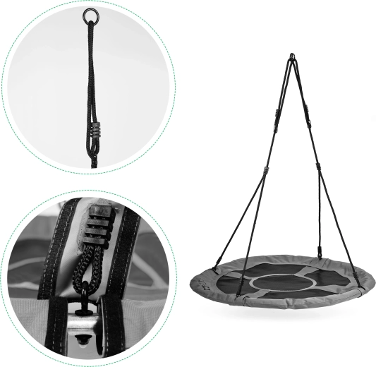 L'altalena a nido di cicogna assicura ai bambini un lungo divertimento all'aperto! Una soluzione ideale per il giardino di casa o il parco giochi.Grazie alla regolazione in altezza della lunghezza delle corde, l'altalena può essere adattata anche all'altezza degli utenti più piccoli, rendendone più facile l'uso.