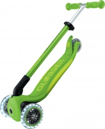 Il monopattino GLOBBER Primo Foldable Plus Lights si distingue per la combinazione di stabilità, sicurezza e divertimento. Le due grandi ruote anteriori da 120 mm con LED alimentati a dinamo colpiscono a prima vista e migliorano la visibilità. La pedana bassa e larga con superficie antiscivolo supporta una postura stabile e un controllo confortevole per i principianti.