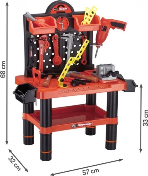 Il tavolo da lavoro per bambini Superior è la scelta ideale per i bambini che amano imitare le vere attività di fai-da-te. Realizzato in plastica sicura e resistente, offre ai bambini dai 3 anni una gamma di strumenti e accessori per ore di divertimento e apprendimento.