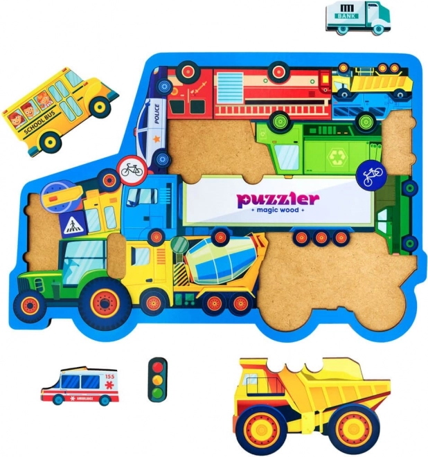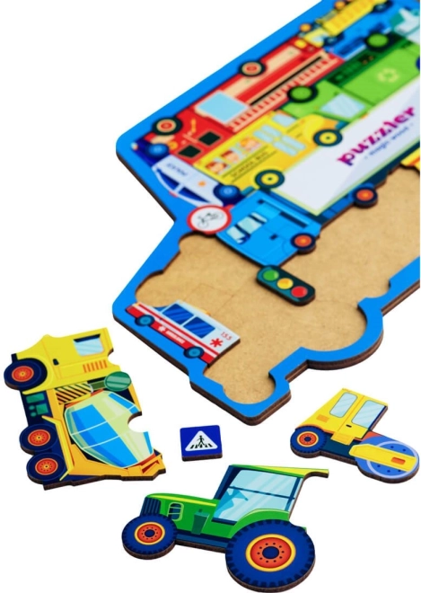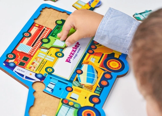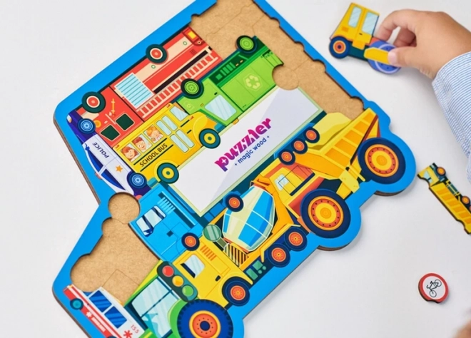 Scopri il divertente mondo dei veicoli con il puzzle in legno WOODLIKA. Contiene 18 pezzi robusti con illustrazioni di auto e segnali, che favoriscono la motricità fine, il pensiero logico e la conoscenza dei mezzi di trasporto. Un gioco educativo ideale per piccoli curiosi e amanti delle auto.