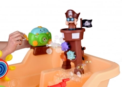 Tavolo/barca pirata in piedi, accessori (formine, animaletti), macchina per bolle