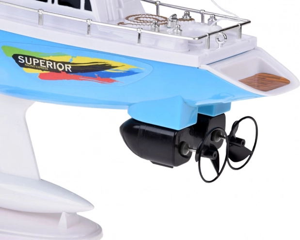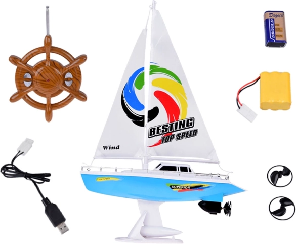 Il radiocomando a volante a 27 MHz è intuitivo e permette di muoversi avanti/indietro e di sterzare in modo fluido a destra e a sinistra. Grazie alla batteria da 7,2 V inclusa e alla ricarica USB, la barca è rapidamente pronta a salpare di nuovo, mentre il supporto è utile per l’asciugatura e l’esposizione del modello.