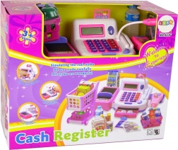 Il registratore include diverse fantastiche funzioni, come lo scanner di codici a barre, l'apertura automatica del cassetto della cassa ed effetti sonori quando si utilizza la carta di credito. Questo set di gioco include anche cestelli, selezione casuale di alimenti e carrello della spesa, creando così un pacchetto completo per giocare al negozio.