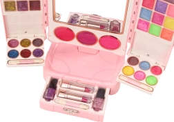 Elegante set di bellezza rosa per bambini con specchio da tavolo regolabile che farà felici le piccole appassionate di trucco. Include rossetti, smalti, gloss, glitter e pennellino, ha un design compatto e soddisfa le norme CE ed EN71. Ideale per bambini dai 3 anni.