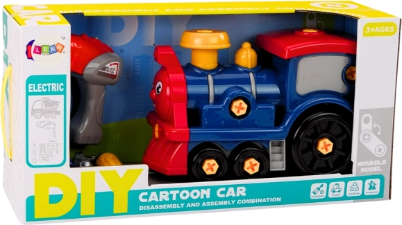 Giocattolo divertente ed educativo per piccoli costruttori: una locomotiva assemblabile in colore blu scuro con utensili che supporta la motricità fine, la concentrazione e la creatività. Inclusi trapano giocattolo, cacciavite e punte intercambiabili per smontare e rimontare con facilità. Il giocattolo è certificato CE, conforme alla norma EN71 ed è adatto ai bambini dai 3 anni in su. Il trapano è alimentato da 3× 1,5 V AAA (batterie non incluse).
