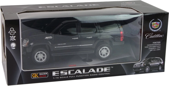 Riproduzione fedele dell'iconico CADILLAC ESCALADE in scala 1:16 con elegante verniciatura nera e dettagli accurati della carrozzeria.