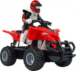 Questo quad RC rosso in scala 1:16 colpisce per l’aspetto curato e la costruzione resistente. Grazie al radiocomando a 27 MHz è facile da guidare sia in casa sia all’esterno. Gli pneumatici in gomma morbida assicurano un’ottima aderenza su varie superfici e una marcia fluida.