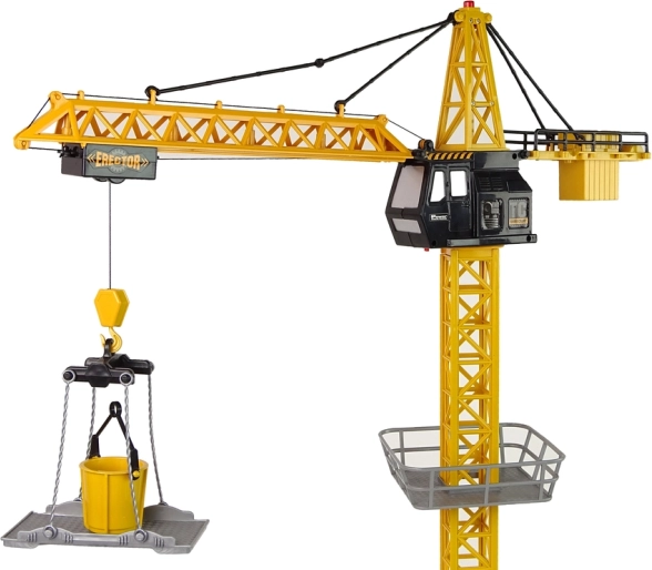 Controllare un oggetto grande come una gru da costruzione è il sogno di molti bambini che passano accanto ai cantieri dei grattacieli. Guardando in alto, vedono in una piccola cabina un uomo che manovra tonnellate di ferro e cemento. Le persone a terra gli sembrano formiche! Realizzata con particolare cura e ricca di dettagli. È un ottimo giocattolo per i piccoli costruttori.