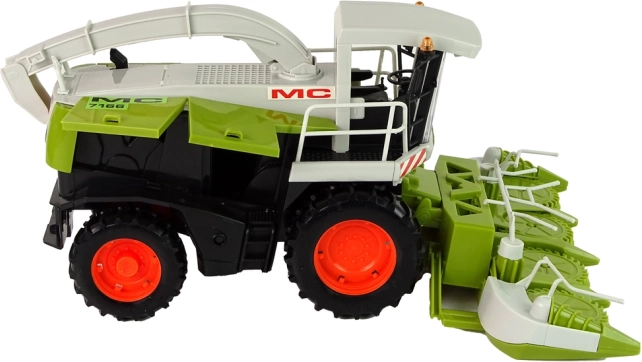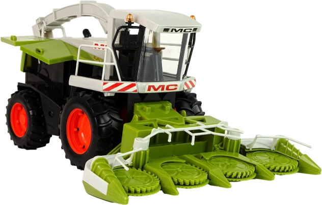 La mietitrebbia include parti mobili come il volante e l’apparato di taglio, che imitano il vero lavoro nei campi.