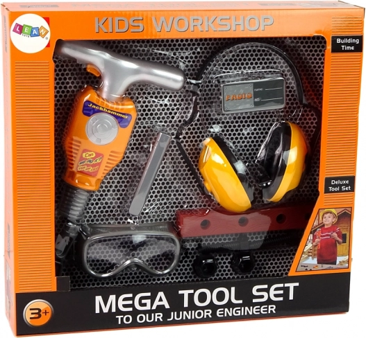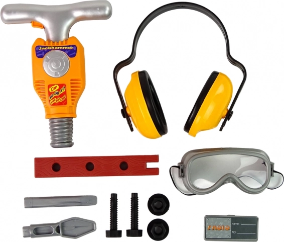 L’intero set è confezionato in una scatola con vetrina trasparente che attirerà lo sguardo dei bambini. Il set include viti che possono essere avvitate con il martello e la punta corrispondente. Un ulteriore vantaggio di questo set è che, dopo aver inserito le batterie e premuto il pulsante arancione visibile sull’impugnatura, il martello inizia a funzionare nel suo modo caratteristico. Inoltre, il bambino può indossare cuffie e occhiali protettivi, il che offrirà ancora più divertimento ma anche sicurezza durante l’uso del martello demolitore. Tutti i componenti sono realizzati in plastica e sono sicuri per i bambini.