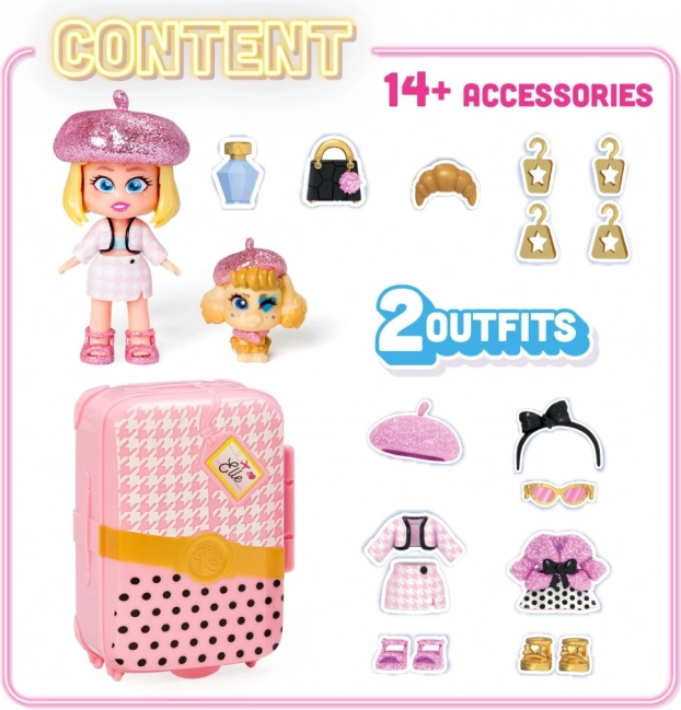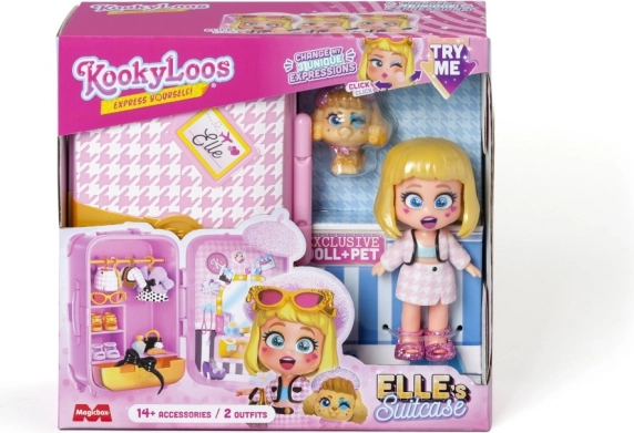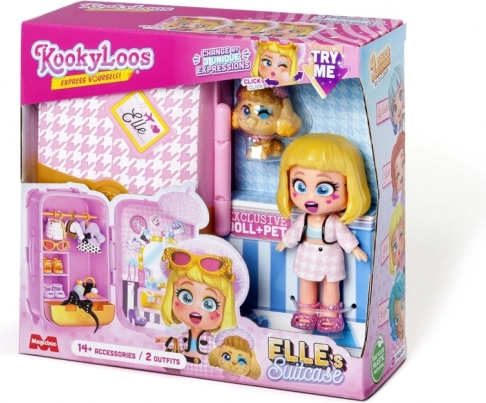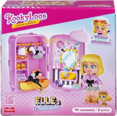 Siete pronti a partire per un viaggio? La valigetta KookyLoos contiene tutto ciò di cui avete bisogno per divertirvi alla grande. Vi aspettano fino a 4 modelli da collezionare! Elle è una vera esperta di moda. Il suo abbigliamento haute couture è lo stile parigino più recente! Siete pronti per un tour tra le gioiellerie di Place Vendôme e Rue Cambon? Ma sarete voi a decidere quale dei due outfit indosserà per l’ultima sfilata di moda! Ha anche tre diverse espressioni del viso che potete cambiare con un solo clic. Potete riporre tutto nella valigetta e portarlo con voi! La valigetta include: bambola KookyLoos esclusiva, 2× outfit, 1× animaletto, più di 13 accessori e grucce.