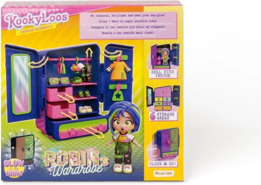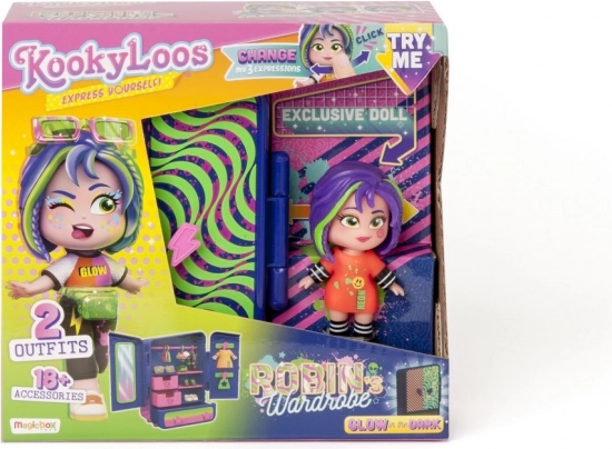 Scopri un mondo di creatività con la bambola KookyLoos Robin. Questa bambola speciale offre la possibilità di cambiare l'espressione del viso con un clic, stimolando la fantasia e il gioco dei bambini. Nella confezione troverai: