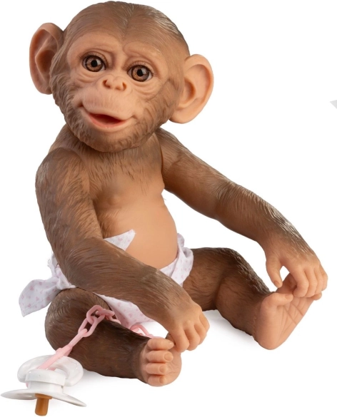 Questa realistica scimmietta reborn conquisterà bambini e collezionisti con la sua lavorazione accurata. Il corpo interamente in vinile con texture delicata e pieghe ben definite ha un aspetto naturale e permette un bagnetto sicuro (si consiglia di evitare di bagnare le ciglia). Grazie alle articolazioni di braccia e gambe, la scimmietta è altamente posizionabile: può sedersi e si può appendere per le mani o i piedi.