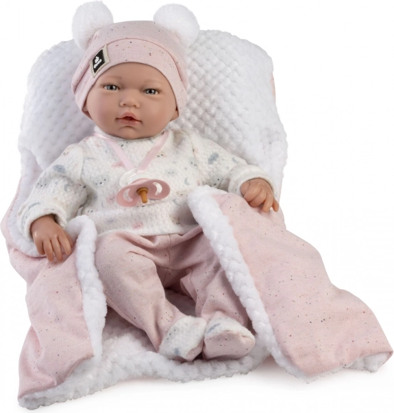 La bambola è fornita con un ciuccio che funge da accessorio elegante ed è confezionata in una raffinata scatola regalo, il che la rende un magnifico regalo per bambini dai tre anni in su. Il suo design realistico e l'eccellente qualità di lavorazione garantiscono ore di divertimento.