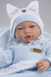 Questa bambola sonora realistica ha un corpo in morbido tessuto per abbracci piacevoli e momenti di gioco. È dotata di giunture su mani e piedi che consentono il posizionamento e la seduta, il che supporta un gioco più vario. La bambola viene fornita con un ciuccio come accessorio ed è fatta a mano in Spagna, il che conferisce un senso di esclusività.