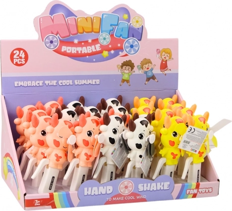 Scopri il nostro adorabile mini mulino a vento a forma di mucca, che ti divertirà e rinfrescherà nelle giornate calde! Questo accessorio unico è azionato manualmente premendo la maniglia bianca, quindi è estremamente facile da usare e completamente sicuro per i bambini. Il mulino a vento è disponibile in tre adorabili colori: giallo, bianco e rosa, così puoi scegliere il tuo preferito.
