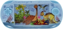 Questo classico gioco ad anelli ad acqua con dinosauri offre un divertimento semplice ma avvincente, senza batterie. Premendo i pulsanti laterali crei un flusso d’acqua che trascina gli anelli – il tuo compito è centrarli sui piolini appuntiti. Ottimo per rilassarsi e concentrarsi ovunque e in qualsiasi momento.
