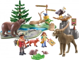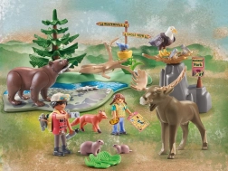 - Ricca dotazione: 2 minifigure umane (uomo ca. 7,5 cm, bambina ca. 5,25 cm), grizzly, aquila di mare testabianca, alce, volpe, 2 marmotte, 3 aringhe, uccello, base con fiume, conifera, segnaletica direzionale, fotocamera, binocolo.