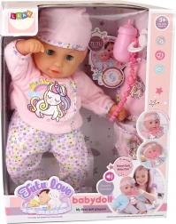 Scopri la meravigliosa bambola per bambini, che è il compagno perfetto per ogni piccino. La bambola è decorata con un motivo di unicorno e effetti sonori, rendendo il gioco ancora più divertente.