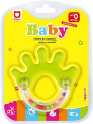 Sonaglio a forma di mano in piacevoli colori pastello, ideale per i più piccoli e aiuta a sviluppare abilità motorie e visive.