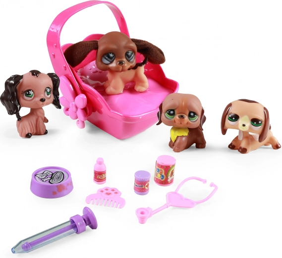 Il set include anche l'attrezzatura necessaria per giocare al veterinario - pettine, ciotola per il cibo, siringa e altri strumenti. Tutti gli accessori sono progettati pensando alla sicurezza e al divertimento.