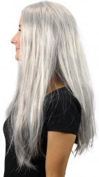 Capelli lunghi, lisci e grigi per un aspetto autentico