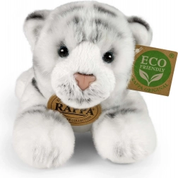 Questa tigre bianca sdraiata del marchio RAPPA è pensata per offrire la massima morbidezza e sicurezza. Grazie alla lavorazione artigianale appare molto realistica e invita a coccole e gioco creativo. L'imbottitura è realizzata con bottiglie PET riciclate, è sicura e al tatto indistinguibile da quelle classiche: una scelta attenta sia per l'ambiente sia per i bambini.
