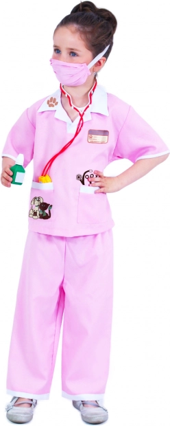 Il costume da veterinaria per bambine, in un delicato rosa con elegante motivo animale, stimola la fantasia e l’amore per gli animali. Il set completo è progettato per un’altezza di 117–128 cm ed è adatto a carnevali, feste in maschera e al gioco in casa.