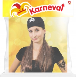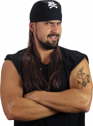 Entra nel ruolo di un impavido pirata in pochi secondi. Questa parrucca da pirata con bandana si distingue per un marcato pirate look con simbolo del teschio e ossa incrociate che cattura subito l'attenzione. È perfetta per carnevale, Halloween, balli in maschera ed eventi a tema.