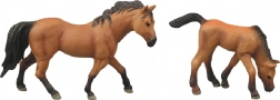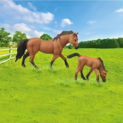 Questo set include due cavalli in plastica: un cavallo adulto e un puledro, ideali per scopi educativi e decorativi.