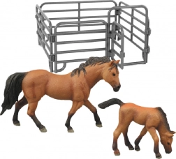 Presentiamo un grande divertimento per i bambini che amano gli animali e il mondo contadino. Questo set offre figure realistiche di cavalli in plastica e un recinto che stimola l'immaginazione infantile.